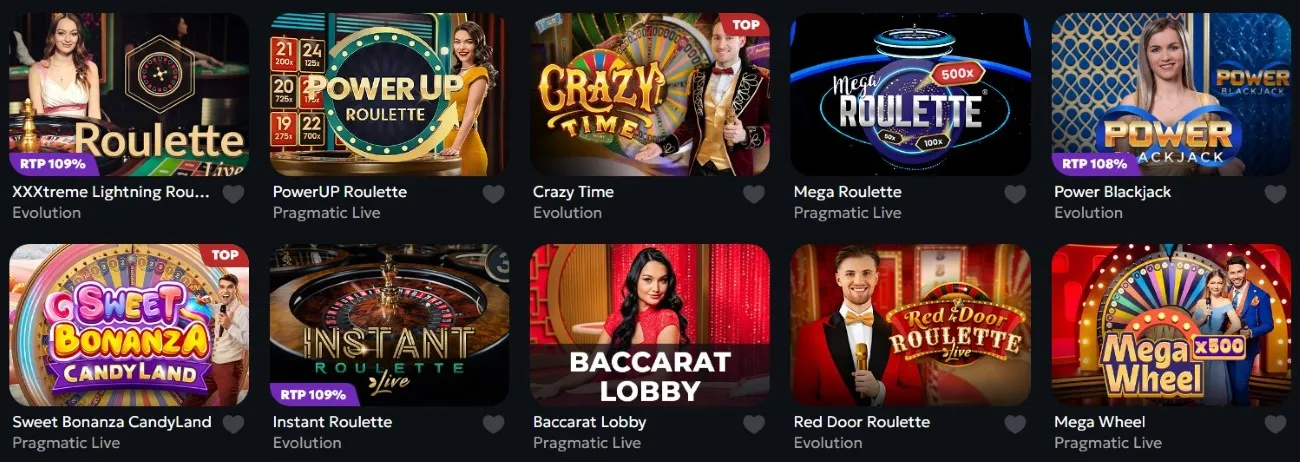 | Διαθέσιμα παιχνίδια καζίνο | Παιχνίδια μπόνους, κουλοχέιρους, τουρνουά, ζωντανό καζίνο, παιχνίδια μικρού μεγέθους, τζακπότ, επιτραπέζια παιχνίδια |